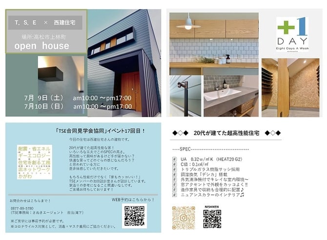 「TSE合同見学会」協同イベント17回目! 「香川でいい家建てるなら、まずTSEを見てみよっ!」 TSEには、快適で素敵なお家づくりをサポートしてくれる設計事務所や インテリアコーディネイターもいますよ! 第17回は「高松市上林町 20代が建てた高性能住宅 体感見学会」 Ua値 0.32w/㎡k C値 0.1㎠/㎡ 高性能とデシカによる調湿、その相乗効果を...