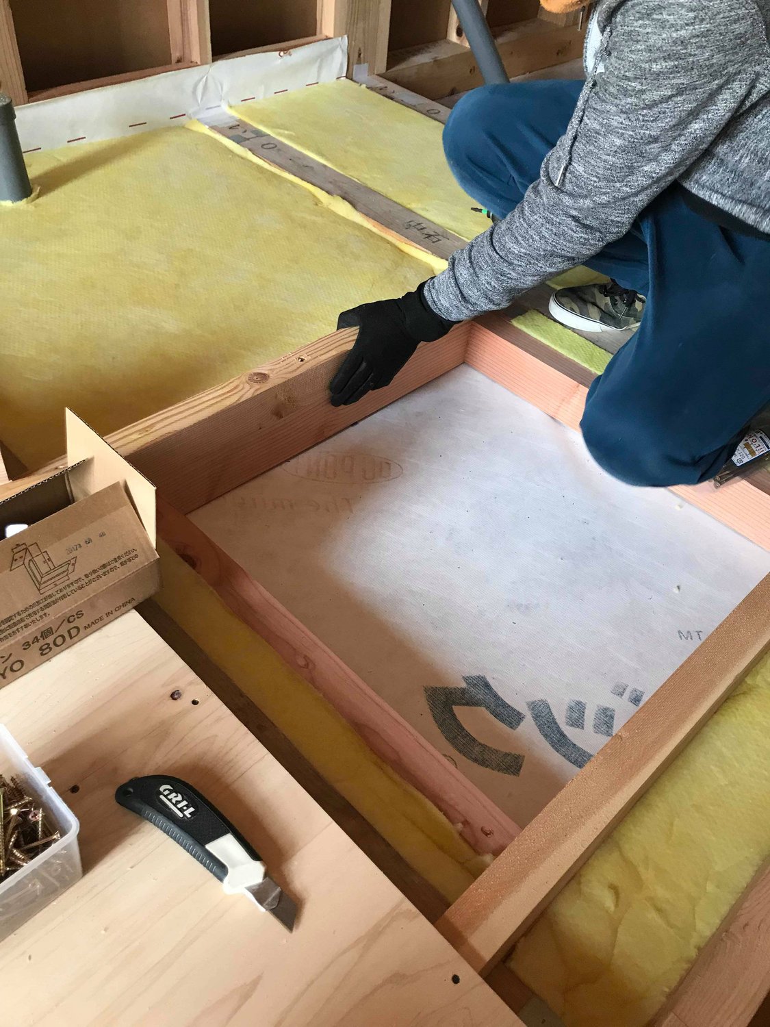 高松市の現場で床断熱の工事が進んでいます。 今回のポイントは冬に冷たい思いをしないために ・断熱材を分厚くいれる(150mm) ・断熱材の入っていないところを少なくする(ヒートブリッジを極少に) ・もちろん気密の確保(気流止めはもちろん) ・静止空気層の確保 というポイントを抑えた設計と施工をしています。