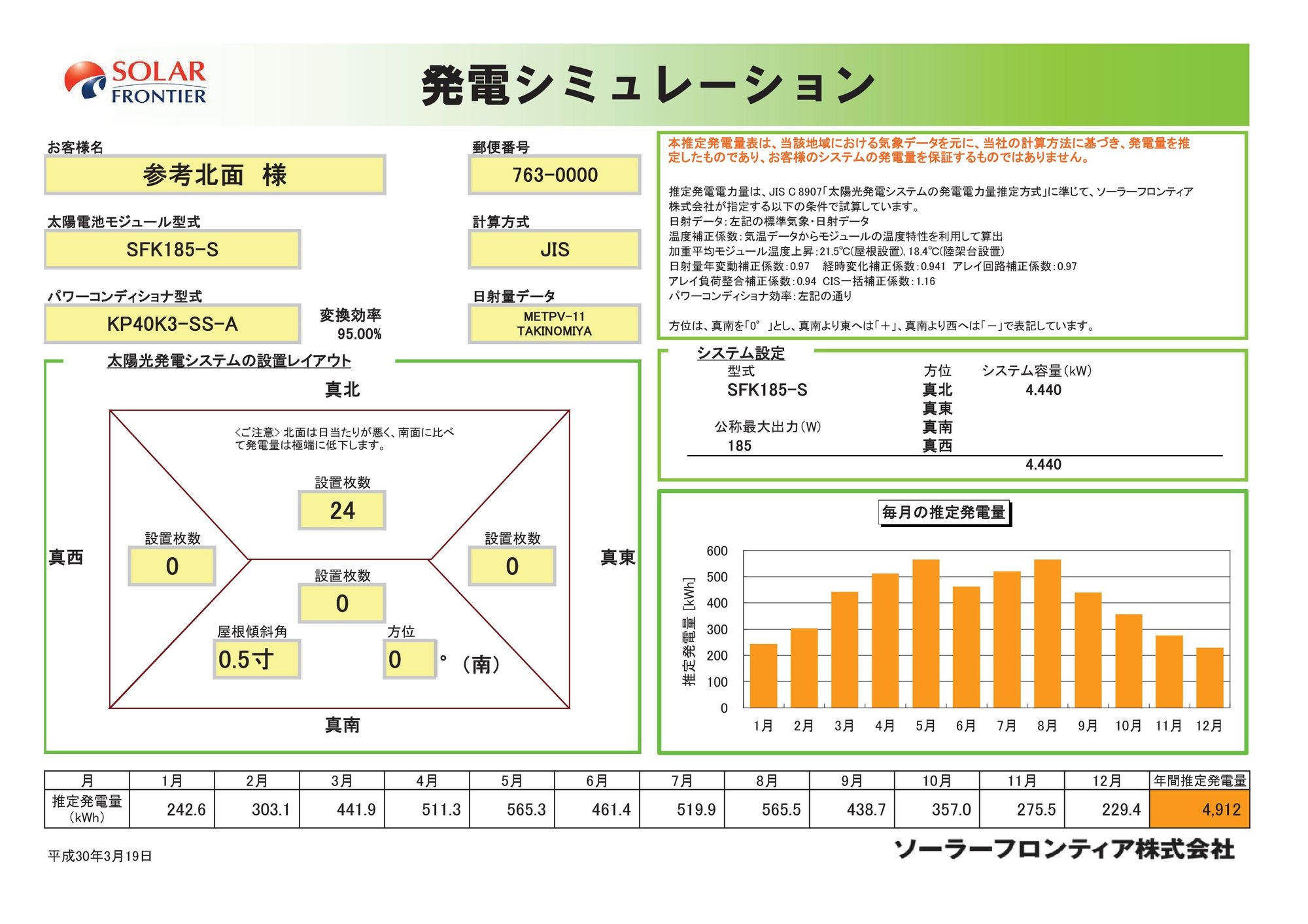 南向き0.5寸等の緩勾配の屋根や10寸の急勾配の屋根でも、最適な30°(6寸勾配)から効率があまり落ちないソーラーフロンティアに代表される「薄膜系」の太陽光発電のパネル。 ふと思ったのですが、北面の緩勾配の屋根につけるとどうなるんでしょう?...